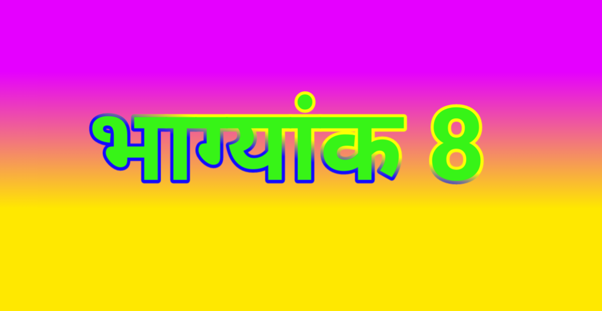 भाग्यांक 8: भाग्यांक 8 वाले लोग अपने जीवन में बहुत संघर्ष, मेहनत से भरा होता हैं। इन लोगों को आसानी से कुछ नहीं मिलता, इन्हें बहुत मेहनत करके हासिल करना होता है। कोई भी कार्य इन्हें खुद के दम पर खडा करना पड़ता है। ये लोग कोई भी कार्य अपनी पूरी जिम्मेदारी से खुद के दम पर पूरा करते हैं। अपनी इच्छा को पूरा करने के लिए ये लोग बड़े से बड़ा त्याग करने के लिए तैयार होते है। भाग्यांक 8 वालों के लिए शुभ दिन गुरुवार, शुक्रवार, और सोमवार है। शुभ तारीख 8, 17, 26